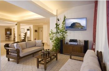 Γενικά | Κατά την άφιξη σας θα συναντήστε έναν άνετο χώρο να παρκάρετε το αυτοκίνητό σας, πολύ κοντά στην κεντρική είσοδο του ξενοδοχείου. Ο επίσης άνετος χώρος υποδοχής, σε συνδυασμό με την φιλική και οικογενειακή ατμόσφαιρα, σας καλωσορίζουν στην μαγευτική Μονεμβασιά. Το προσωπικό μας, χωρίς καμία καθυστέρηση, θα σας συνοδεύσουν στο δωμάτιό σας και θα σας δώσουν τις πρώτες πληροφορίες σχετικές με το ξενοδοχείο και την περιοχή. Το πρωινό σερβίρεται σε μορφή μπουφέ, προσφέροντας ζεστά και κρύα πιάτα, στην μεγάλη αίθουσα που βρίσκεται στο ισόγειο, είτε με την ζέστη από το τζάκι τον χειμώνα, είτε με την δροσιά της θάλασσας το καλοκαίρι. |