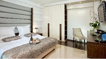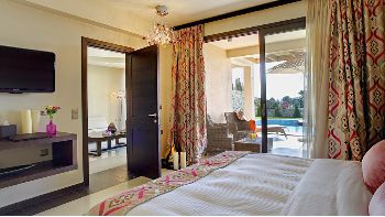 Παιδιά κι επιπλέον κρεβάτια | Η μέγιστη χωρητικότητα για επιπλέον κρεβάτια/βρεφικές κούνιες σε ένα δωμάτιο είναι 1. Για τις περιόδους από 15/04/13 έως 02/06/13 & 21/09/13 έως 05/10/13 τα παιδιά από 1-12 ετών που μοιράζονται το δωμάτιο των γονέων τους δεν χρεώνονται. Σε περίπτωση τρίτου ατόμου στο ίδιο δωμάτιο η χρέωση 50% στην τιμή του ατόμου. Για τις περιόδους από 03/06/13 έως 30/06/13 & 01/09/13 έως 20/09/13 τα παιδιά από 1-12 ετών που μοιράζονται το δωμάτιο των γονέων τους δεν χρεώνονται. Σε περίπτωση τρίτου ατόμου στο ίδιο δωμάτιο η χρέωση είναι 60% στην τιμή του ατόμου. Για την περίοδο από 01/07/13 έως 31/08/13 τα παιδιά έως 2 ετών είναι δωρεάν. Τα παιδιά από 3-12 ετών χρεώνονται 15 Ευρώ/ημέρα. Σε περίπτωση τρίτου ατόμου στο δωμάτιο η χρέωση είναι 70% στην τιμή του ατόμου. Για όλες τις περιόδους η τιμή της Deluxe Villa είναι με ημιδιατροφή. |