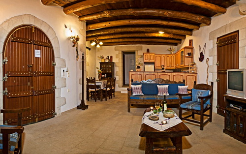 The stone villa Viviana has been designed with care so that you can enjoy your holidays throughout the year on hot summer days or cold winter nights with your partner, family or friends. The name ’’Viviana’’ refers to the circular stone ’’threshing floor’’ that was used in the past to separate the grain from the chaff and which is still in the garden. Viviana Villa has been built in a traditional style, with the skilful use of stone and wood. This combination, gives a traditional warm atmosphere. This luxury villa provides all the comforts to ensure a pleasant and relaxing stay and can accommodate 5 persons in two spacious bedrooms. All double beds are equipped with mosquito nets, to ensure your uninterrupted sleep. Your stay will enable you to escape from routine, resting by the fire place in the comfortable open-plan sitting room, with a view of the swimming pool and the luxuriant garden, where you can drink your wine, read, play board games or do whatever you prefer. You can also enjoy a hydro massage in the spacious bathroom or take a rest on the terrace, enjoying the view of Apokoronas or relax on the swing in the garden among the various plants and olive trees. |