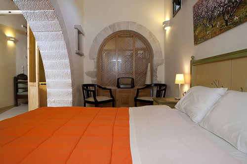 Darius apartment/house, in a rural location in Kastellos Village with communal swimming pools, is on the northwest coast of Crete, about 5 km from Georgioupolis. This flat is part of one of the four stone, traditional Greek flats in Kastellos Village. The Village is located partially in the mountains at the foot of the white mountains and at an elevation of 252 metres. The home is modernly furnished and provided with all comforts, built around communal swimming pools, with large terraces and breathtaking wide views. The building has a small reception, open in the evening, where shopping can be ordered and where the necessary information about the region and the various excursions can be found. The complex is primarily intended for those who want to escape the hustle and bustle of everyday life and want to enjoy the Cretan countryside and landscape. And yet these flats are only 5 km from the popular coastal town of Georgiou polis. Geourgioupolis is located in a beautiful bay with an old port with small fishing boats and has a large beach which stretches for miles. There are many restaurants and tavernas with tasty locally prepared meals and lovely shops. Georgioupolis is located between the large cities of Chania, 35 km and Rethymno 25 km. 5 km away is the freshwater lake of Kournas with water boats and recreation. In the surrounding area there is much to see and explore, and a stay in these flats is a perfect starting point. The kitchen is simple and not suitable for preparing large meals. |