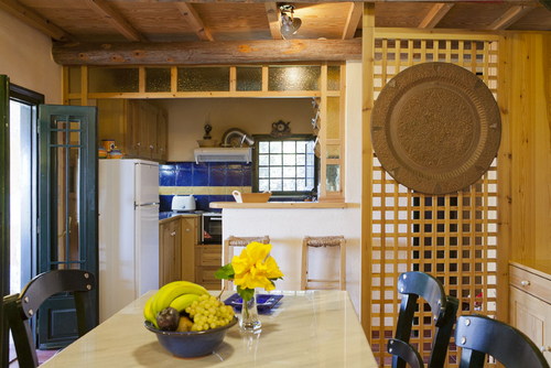 Gregoly, in a rural location in Kastellos Village with communal swimming pools, is on the northwest coast of Crete, about 5 km from Georgioupolis. This flat is part of one of the four stone, traditional Greek flats in Kastellos Village. The Village is located partially in the mountains at the foot of the white mountains and at an elevation of 252 metres. The home is modernly furnished and provided with all comforts, built around communal swimming pools, with large terraces and breathtaking wide views. The building has a small reception, open in the evening, where shopping can be ordered and where the necessary information about the region and the various excursions can be found. The complex is primarily intended for those who want to escape the hustle and bustle of everyday life and want to enjoy the Cretan countryside and landscape. And yet these flats are only 5 km from the popular coastal town of Georgioupolis . Georgioupolis is located in a beautiful bay with an old port with small fishing boats and has a large beach which stretches for miles. There are many restaurants and tavernas with tasty locally prepared meals and lovely shops. Geourgiopolis is located between the large cities of Chania, 35 km and Rethymno 25 km. 5 km away is the freshwater lake of Kournas with water boats and recreation. In the surrounding area there is much to see and explore, and a stay in these flats is a perfect starting point. The kitchen is simple and not suitable for preparing large meals. |