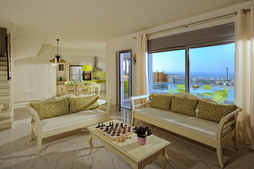 Built with zest, refined taste and respect to the privacy of every visitor, Lycomedes independent villa is the ideal destination for a pleasant and unforgettable holiday experience, in an area of superb natural beauty and excellent climate, tenderly caressed by the breeze of the deep blue Cretan Sea. The villa is part of a complex, which is located in Koutouloufari and can accommodate up to 6 persons. The interior of the ground level (pool area level) consists of a spacious sitting room, a dining area, a fully equipped kitchen, a twin bedroom and a bathroom with bathtub. In the exterior of the ground level, there is the pool and the pool area, as well as gardens and flower-beds. An outside dining area can also be found on the ground level. The interior of the upper level (parking area level) consists of a twin bedroom, a bedroom with a king-size bed and a bathroom with shower cabin, which is accessible by both bedrooms. On the exterior of the upper level, there is a spacious terrace, flower-beds and a large parking area. All three bedrooms of the villa come out to either a terrace or a balcony. The two levels of the villa are connected with interior and exterior stairs. The villa is accessible by two entrances on both the ground and the upper level. |