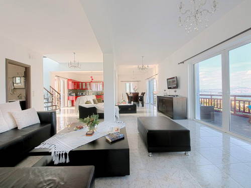 Steve Villa was built in 2009 and is situated in an idyllic location in Kambia, municipality of Vamos, Chania, Crete, it is ideal for holidays that combine both mountain and sea. The villa is divided in three levels. It can house up to 6 people, while an extra 2 can also be accommodated. It comes equipped with all the comforts of a luxury residence. The villa offers a balanced blend of luxury and comfort. High quality construction, combined with a sense of discreet luxury and superior aesthetics, offer an accommodation of high standards. The magnificent view to a canyon with the deep blue sea in the background, the games in the pool, the reading of a book on the grass while the children play in the playground and taste the delicacies that you cook them at the barbeque, the enjoyment of a coffee or a drink on the wooden balcony overlooking Souda Bay watching the sunset, all offer the unique opportunity of a carefree stay full of wonderful moments of relaxation. The first level consists of a bedroom with two single beds, a large bathroom, a spacious lounge, a dining room and an up to date and fully equipped kitchen. At the second level there are two large living rooms with a fireplace. The magnificent view over the sea and mountains, as well as the satellite TV, guarantee for beautiful moments with your family or friends. A large dining table for six, a spacious bathroom and one more fully equipped kitchen come to complement this floor. In the third level one can find the master bedroom with double bed, a fireplace and a bathroom equipped with Jacuzzi. On the same floor there is a second bedroom, also equipped with a double bed and a private bathroom. Steve Villa’s yard is spacious and its 700 m2 are ideal for someone to relax while enjoying the nature, the rich vegetation and the sounds of birds singing. |