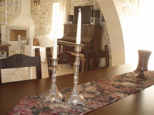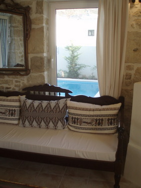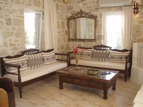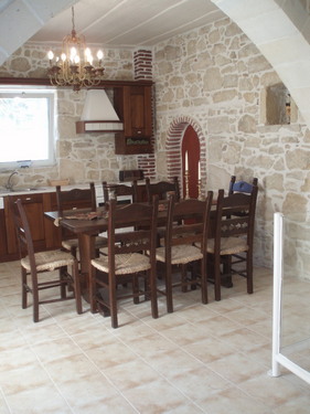 Isiah Villa is a renovated stone made traditional manor-house that can accommodate up to 8 persons and is situated in the traditional village Kamilari. The villa is on three levels and provides four bedrooms, three bathrooms (the one with whirlpool bathtub 1.55x1.55m and the others with shower), gym room, fully equipped kitchen, dinning-room, living-room with a fire place and a piano antique. The villa is furnished and decorated with authentic pieces of furniture in combination with careful selection of synchronous in order to be quality and comfort. In the outside area is the swimming pool (3.00mx9.50m-deep 1.30m), the BBQ area-traditional oven, a terrace tided up on a garden with sea view, garden around the villa and a private parking. The villa provides total privacy and quiet and its open all over the year. All necessary shops, taverns, cafenions, mini-markets, gift shops rent a car can be found in the village Kamilari, while a wider choice is offered in Matalla, Mires, Tympaki, small towns close to Kamilari. |