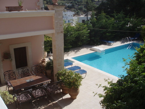 In the center of the village Kamilari, there is the Itzel Villa. It has been built in 1903 in neoclassical style, restored in 996, provides 5 bedrooms and has a spacey yard and a panoramic view of the sea and the mountains. It’s a three-storey villa of 230 m2, can accommodate up to 11 persons and provides: -On the ground floor, a living room that has a fire place and a piano antique, a dinning room, a spacey fully equipped kitchen with a fireplace, two bathrooms one with whirlpool bathtub 1.55x 1.55m and the other with hydro-massage, home-spa shower cabin and one master bedroom. -On the first floor, three double bedrooms, two bathrooms with shower and one gym- room. -On an independent building with separate entrance there is a double bedroom with bathroom with shower. -In the outside area there is a large swimming pool as well as a smaller one for children. In addition to this there are large verandas, a garden around the pool a barbeque and private parking. The villa has total privacy and is open all over the year. All necessary shops, taverns, cafenions, mini-markets, gift shops rent a car can be found in the village Kamilari, while a wider choice is offered in Matalla, Mires, Tympaki, small towns close to Kamilari. |