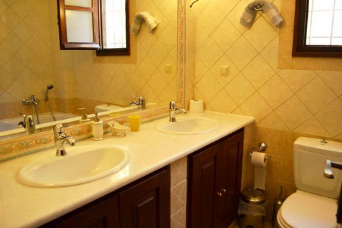 Γενικά | air condition, books, bottled water, CD, clothes washer, fireplace, first aid kit, hair dryer, iron, iron board, linens provided, mosquito net / curtains, radio, safe, satellite or cable, sofa bed, sun bed, toilet paper, towels provided, TV, welcome basket (free), 4 ring stove, blender, coffee maker, cooking utensils, crockery, dish washer, freezer, glassware, kettle, kitchenette, microwave, oven, refrigerator, toaster, barbecue, bed chairs, garden chairs, gated community, outdoor grill charcoal, oven, patio stone - concrete, sun umbrellas, terrace, shower in bathroom #3, shower in bathroom #4, tub in bathroom #1, tub in bathroom #2, |