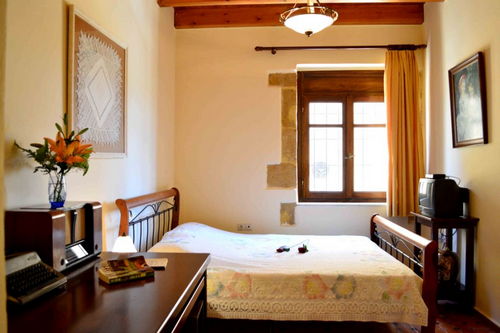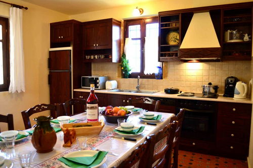 The traditional villa Bryson is located in a beautiful village, a little outside the village of Kolymbari, 25km from Chania, Crete. The renovated buildings of 1926, with their splendid architecture will charm you on sight. They are positioned at the foot of the beautiful mount Vrisalia which provides walkers with a wide choice of paths through spectacular scenery but only 2 km from the sea. They are newly built (Their construction was completed in early 2004) and consist of 2 stone-built traditional apartments. Each one has its private swimming pool, parking and beautiful outside-spaces. The Bryson is a house of 200 square meters for 8 to 12 persons.There are two floors. The ground floor has a spacious room with fireplace, an office, a fully equipped kitchen (dishwasher, washing machine, kitchen, microwave oven, fridge), 2 bathrooms with hydro massage and 1 bedroom. All the furniture of the house is in traditional Cretan style, while there is a satellite television, Hi Fi, air condition in all rooms and a safe box. The upper floor (which is accessible from a traditional, wood, outdoor staircase) leads to 3 bedrooms with mosquito curtains in each and 2 bathrooms with hydro massage. Outside the apartment there is a splendid great outdoor space with a fully equipped barbecue, and a 60 sqm swimming pool placed panoramically with a unique view and a private parking. |
