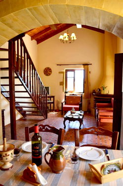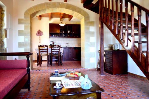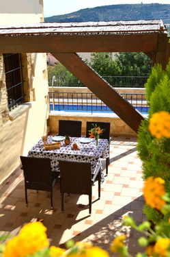 The renovated buildings of 1926, with their splendid architecture will charm you on sight. They are positioned at the foot of the beautiful mount Vrisalia which provides walkers with a wide choice of paths through spectacular scenery but only 2 km from the sea. They are newly built (Their construction was completed in early 2004) and consist of 2 stone-built traditional apartments. Each one has its private swimming pool, parking and beautiful outside-spaces. The Butades is designed for two people but can accommodate 2-3 children too. It has an open plan kitchen/living room on the ground floor and a double bedroom and bathroom with hydro massage function on the upper floor. The swimming pool is 30 sqm, and the villa has a barbecue area and its own private parking. |