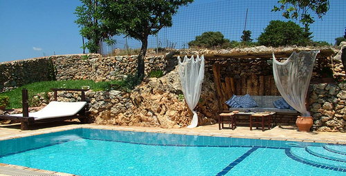 Villa Alisa is located on the top of a small hill adjacent to Villa Chrysa, on the edge of a gorge, just outside the rural village of Exopoli and overlooking the resort village of Georgioupolis. This fantastic villa has been extremely cleverly, and very thoughtfully, designed to provide modern comfortable accommodation that is firmly influenced by Cretan tradition and style. The final result is a very individual design that fully reflects the Cretan character, the local culture and the environment, whilst ensuring a high level of modern comfort that is expected in todays holiday accommodation. The villa stands in its own grounds and has a marvellous position that offers panoramic sea views, tranquillity and privacy. |