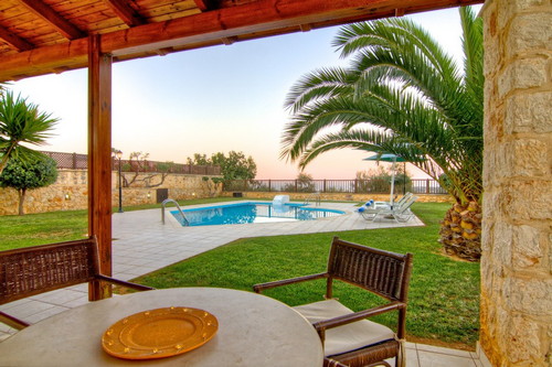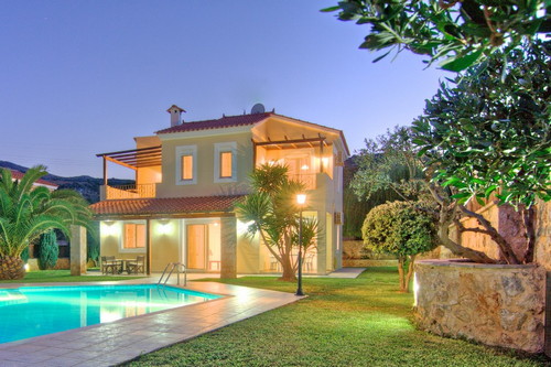 Krikor Villa is part of a complex consisting of four newly built villas, each with its own private pool and located on the outskirts of the village of Gerani about 9 km from the beautiful town of Rethymno where all the amenities can be found. In the village of Gerani there are taverns and supermarkets. The beach of Gerani is at the distance of 3 km. The villa has 3 bedrooms fully air-conditioned and can accommodate up to 6 persons. On the ground floor there is a large lounge with fireplace, a dinning area, and a veranda overlooking the pool, the garden and views towards the olive groves, mountains and the sea. On the same floor there is a large fully equipped open plan kitchen with cooker, dishwasher and a washing machine. Also a bedroom with a double bed and an adjacent shower room. An internal staircase leads to the upper floor where there are 2 more bedrooms, one with a double bed and one twin sharing a large bathroom with a bathtub. Each bedroom has its own balcony overlooking the nice countryside and the sea. The villa has a private pool with sun beds and umbrellas. A car is considered to be essential for exploring the area and the whole island. |