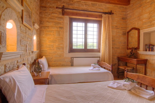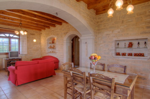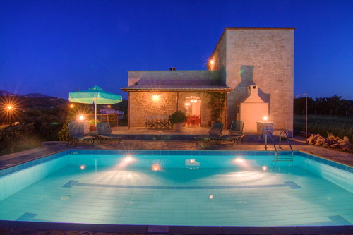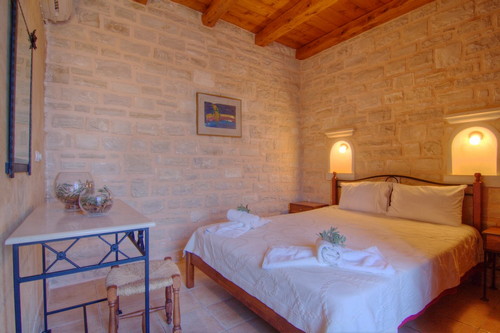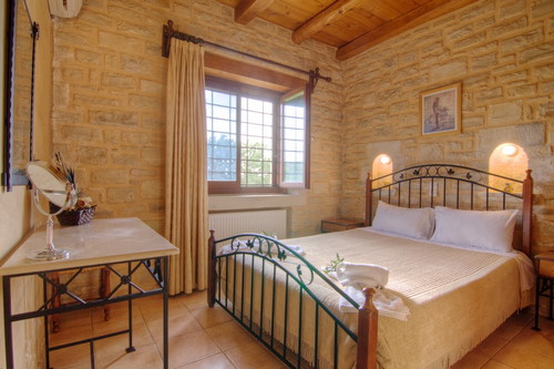 Nikolas is an independent traditional villa of 130 sqm, big enough to host up to 7 people, that is located in Atsipopoulo area. On the ground floor of the villa there is a dining room, a living room with fireplace, a fully equipped kitchen, a bathroom and 2 bedrooms with one double or 2 single beds accordingly. A wooden ladder in the interior leads you upstairs on the first floor where is the third room with a double bed, its own bathroom and a veranda of 65 sqm with magical view. In front of the villa there is veranda with furniture, barbecue and a private pool (35 sqm) with a spectacular view to one of the fewest oak forests in Europe, where as in horizon one can see the Cretan sea and the city of Rethymnon in a magical combination. |