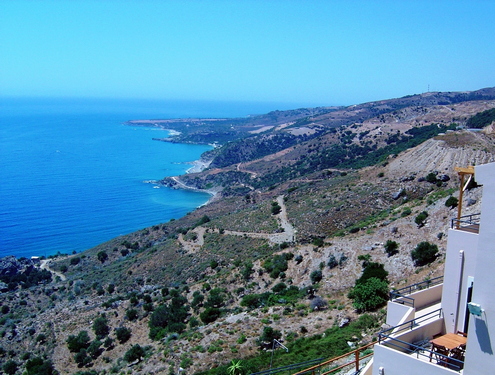 Natalia is a newly built villa set on a hillside on South Crete with panoramic view of the Libyan sea, Paximadia and Gavdos islands , about 2,5 km from the beautiful traditional village of Rodakino where also are a couple of nice taverns and a supermarket. The beach of Korakas is in a short drive. The distance from Rethymno town is 39 km, from Heraklion airport 120km, and from Hania airport is 100 km. The resort of Plakias is 20 km away.