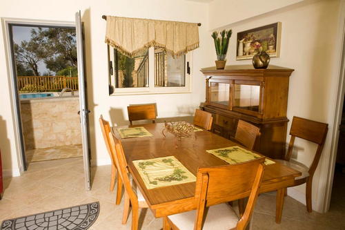 Villa Derrick is part of a complex which is set on the side of the hillside, a terrace with spectacular views down to the Bay of Rethymnon. The villa stands by the upper edge of the hillside and the parking is to the villa’s rear, and the sun terrace and the swimming pool are on the north side on the hillside property’s lower terrace. The villa’s main entrance to the living-area is on the middle level. It is a beautiful classically furnished lounge and dining area with beautiful views to the sea and an open-plan kitchen at the rear side. The kitchen is modern and well equipped. Each living-area has a satellite colour TV set with a flat screen, DVD and CD players, 2 air conditioning units and an open fireplace. Two large glass doors connect the living-area to the spacious balcony. On this level is the first of the bedrooms a twin bedroom, and a bathroom and a washing machine. An inner staircase leads from the living-area to the top floor. There are 2 more bedrooms, both with a double bed. These two bedrooms have access to the upper balcony and a family bathroom. For more than 6 people, the ground floor will be used as well. It can be accessed via an outer staircase and makes a complete dwelling-unit of its own. The ground floor has its own living-area with 2 air conditioning units, and a living/dining room with an attached open-plan kitchen. The ground floor also includes a third bathroom with a bath-tub and two more bedrooms, one of them with a king size bed and the other one with bunk beds, which will be put into service depending on the total number of guests. All bedrooms have large built-in closets and separate air conditioning units which can be switched to heating-mode during chilly nights or in wintertime .The bathrooms are equipped with hair dryers. Iron and ironing boards are available as well. Large glass doors open towards the sun terrace on the north side which frames the swimming pool. |